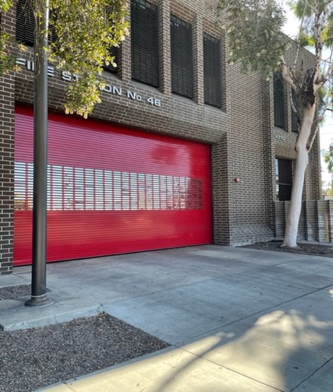 For rolling service doors, each pane is 10" x 1 5/8" and is typically spaced 2" apart.